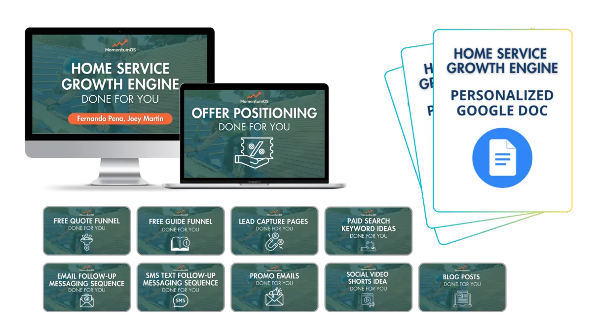 A Complete Home Service Growth Engine Done For You: Your fully personalized and custom-tailored client acquisition system built specifically for your roofing business ($1,497 Value)